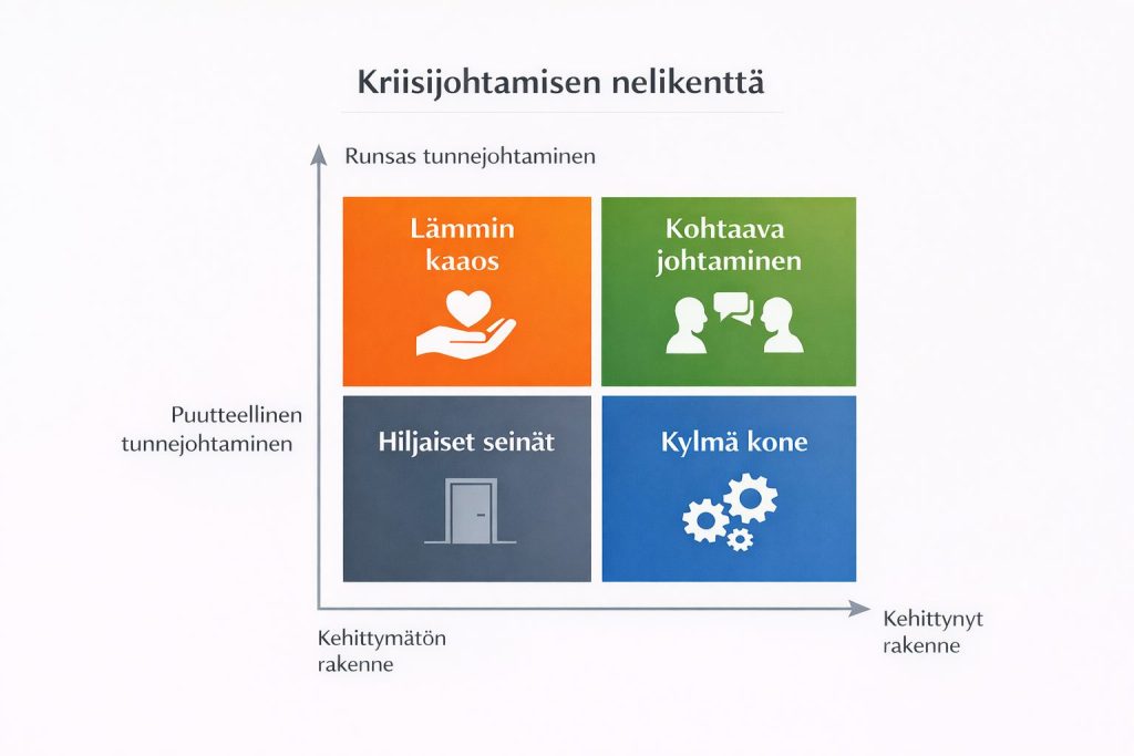 Kriisijohtamisen nelikenttä: rakenteet ja tunnejohtaminen kriisissä